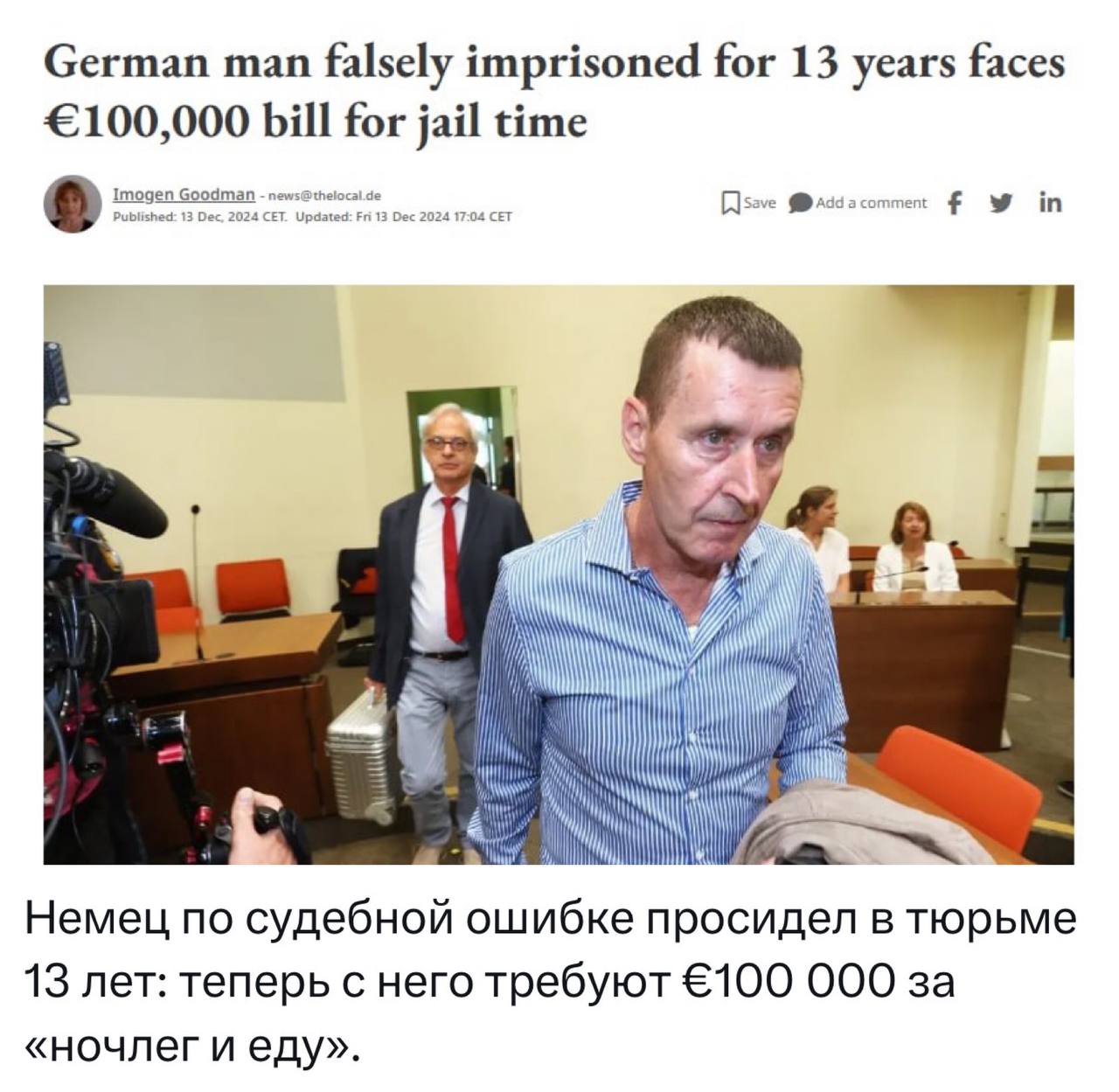 Для полноты картины добавим, что сперва он получил более 350 000 евро компенсации за судебную ошибку.