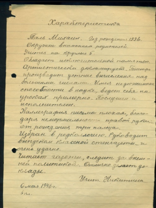 Характеристика ученика 3 класса школы. Юрла. ВОВ. Эвакуация. 1944.