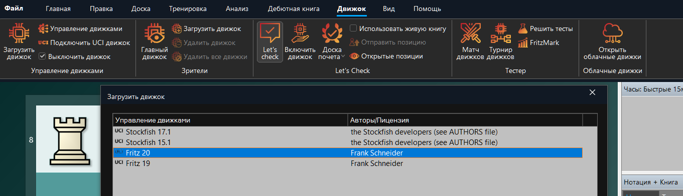 Вот движки в купленном за зверские 1750р. Fritz 20 Steam Edition