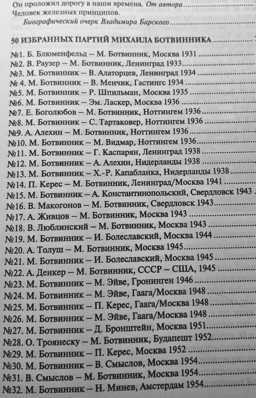 «Качественных партий у Ботвинника очень много, сильных противников тоже, но изначально было принято решение, что для этой книги мы выберем 50 партий. Думаю, всё, что должно присутствовать, в нее вошло. При прочих равных я старался выбирать такие партии, где могу сказать что-то новое» (А. Халифман). Важный бонус книги – краткий теоретический обзор любимых дебютных линий Ботвинника в их историческом развитии.